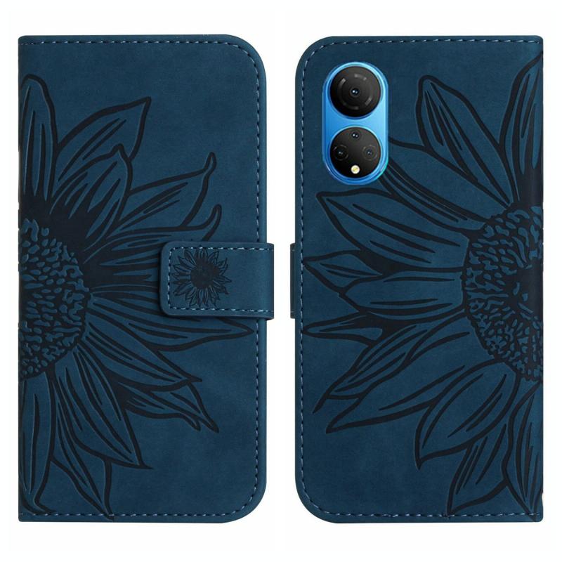 Θήκη τηλεφώνου από δέρμα με σχέδιο ηλίανθου και λουρί για Honor X7 (Μωβ σκούρο)