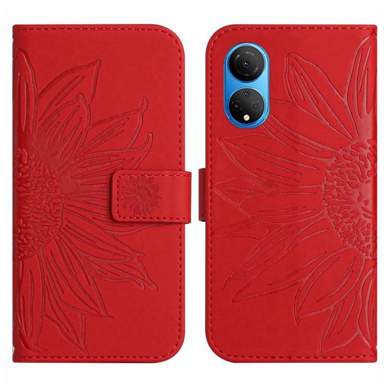 Θήκη τηλεφώνου από δέρμα με σχέδιο ηλίανθου και λουρί για Honor X7 (Κόκκινο)