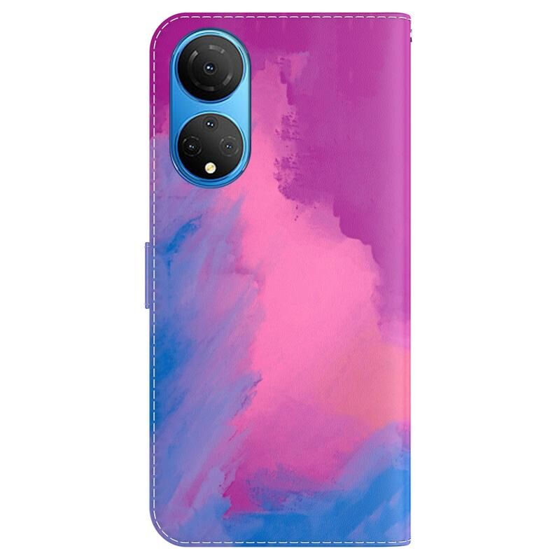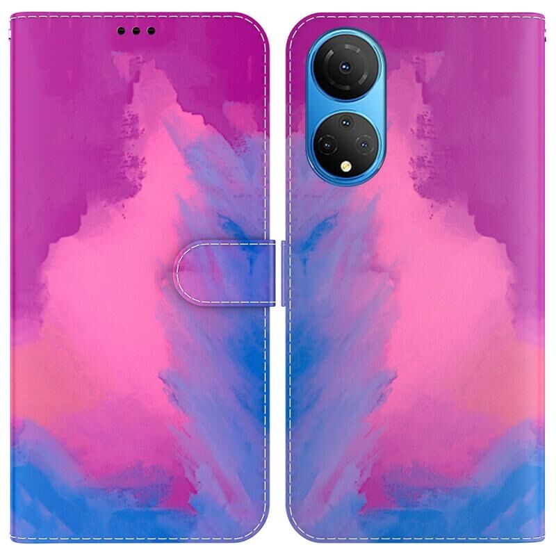 Για Honor X7 Υδατογραφία μοτίβο οριζόντια Flip δέρμα τηλέφωνο υπόθεση (μοβ κόκκινο)