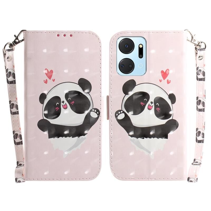 Θήκη τηλεφώνου δερμάτινη, οριζόντια, αναδιπλούμενη, πολύχρωμη 3D για Honor X7A (Heart Panda)