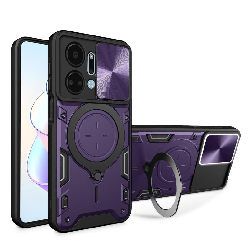 Θήκη κινητού τηλεφώνου για Honor X7a 4G με υφή CD, συρόμενο προστατευτικό κάμερας και μαγνητική βάση (Μωβ)