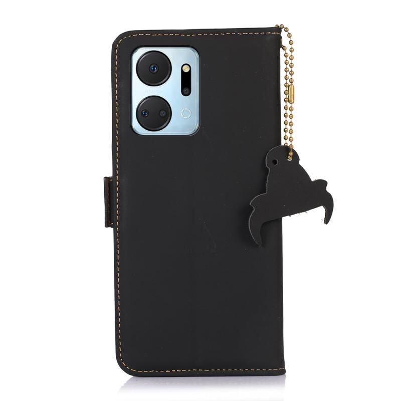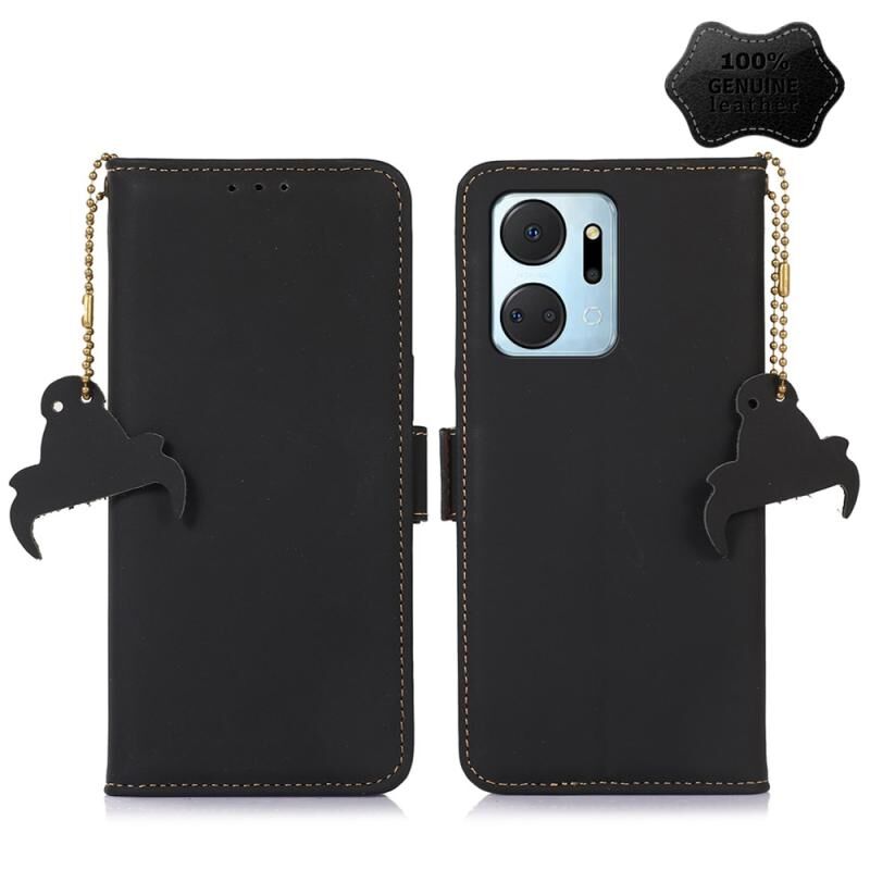 Θήκη τηλεφώνου από γνήσιο δέρμα με μαγνητικό κλείσιμο και προστασία RFID για Honor X7a 4G (Μαύρο)