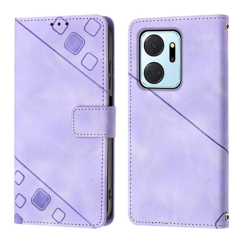 Θήκη τηλεφώνου Honor X7a 4G Global με υφή δέρματος (ανοιχτό μωβ)