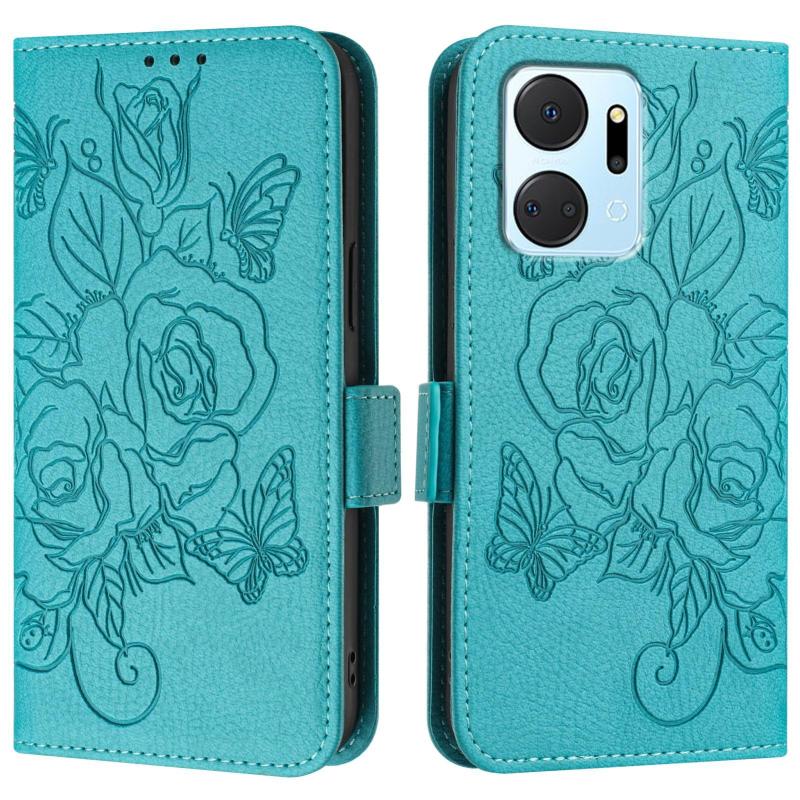 For Honor X7a 4G / Play 7T 5G Embossed Rose RFID Anti-theft Leather Phone Case(Light Blue)