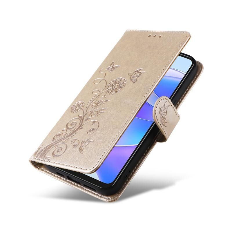 Θήκη τηλεφώνου από δέρμα με ανάγλυφα σχέδια πεταλούδας και λουλουδιών για Honor X7a 4G / Play 7T (Μωβ)