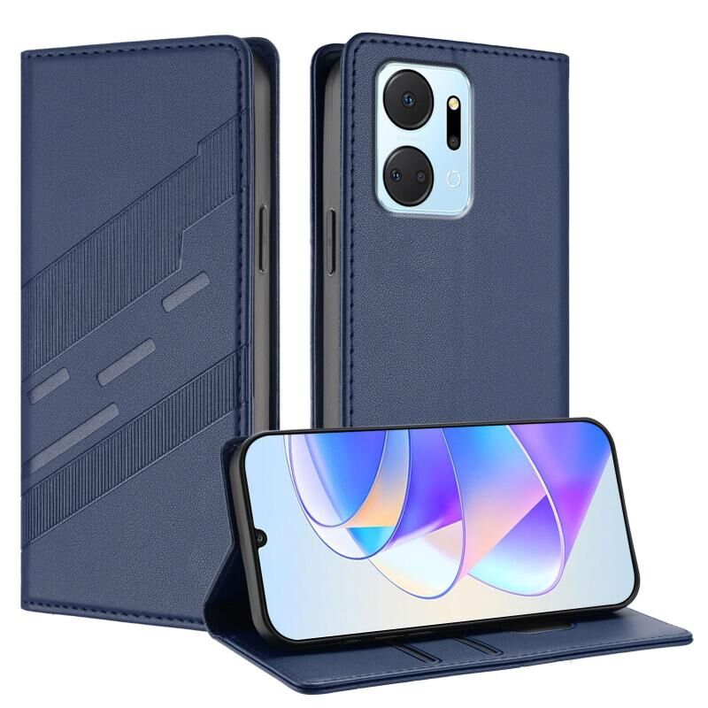 Θήκη τηλεφώνου από δέρμα retro, πολυλειτουργική με πορτοφόλι, ανάγλυφη για Honor X7a 4G / Play7T 5G (Μαύρο)