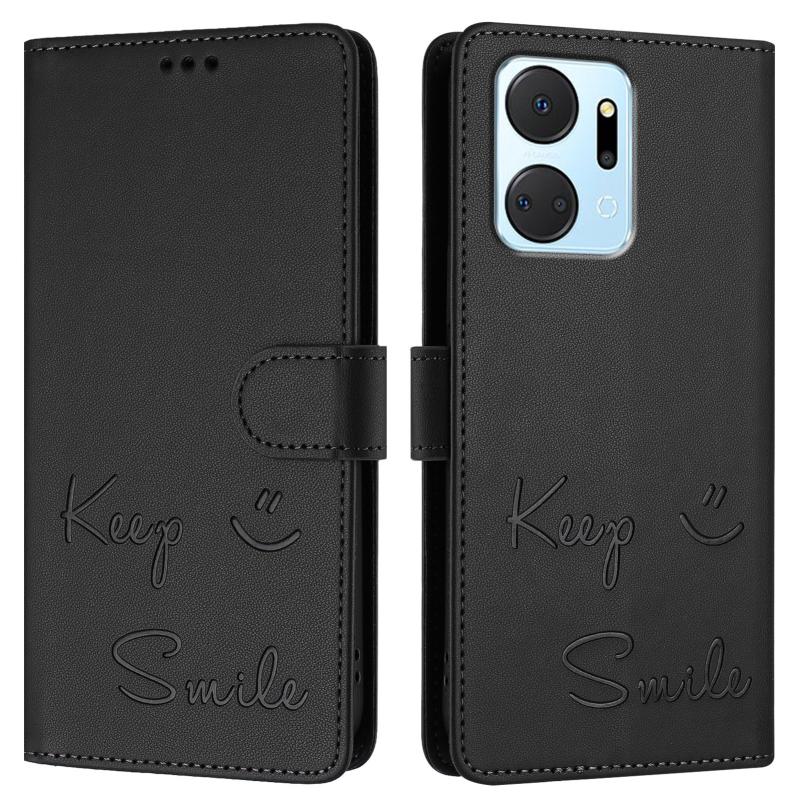Θήκη τηλεφώνου από δέρμα με ανάγλυφο χαμόγελο RFID για Honor X7a 4G/Play7T 5G (Μέντας Πράσινο)