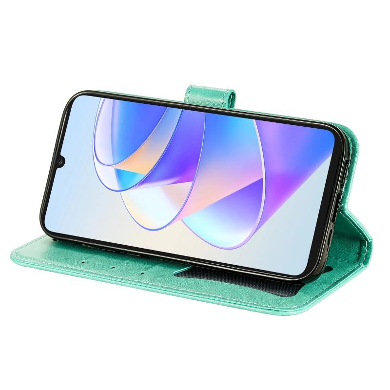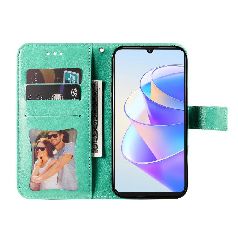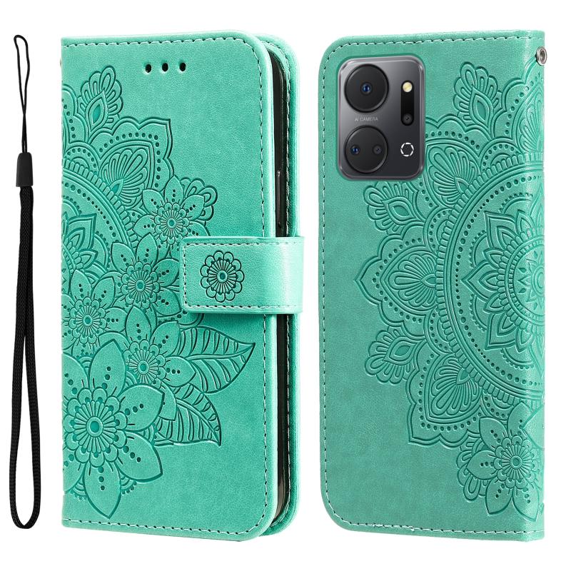 Θήκη τηλεφώνου Honor X7a με δερμάτινη ανάγλυφη διακόσμηση 7 πετάλων (πράσινο)