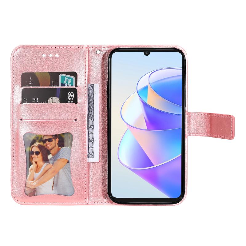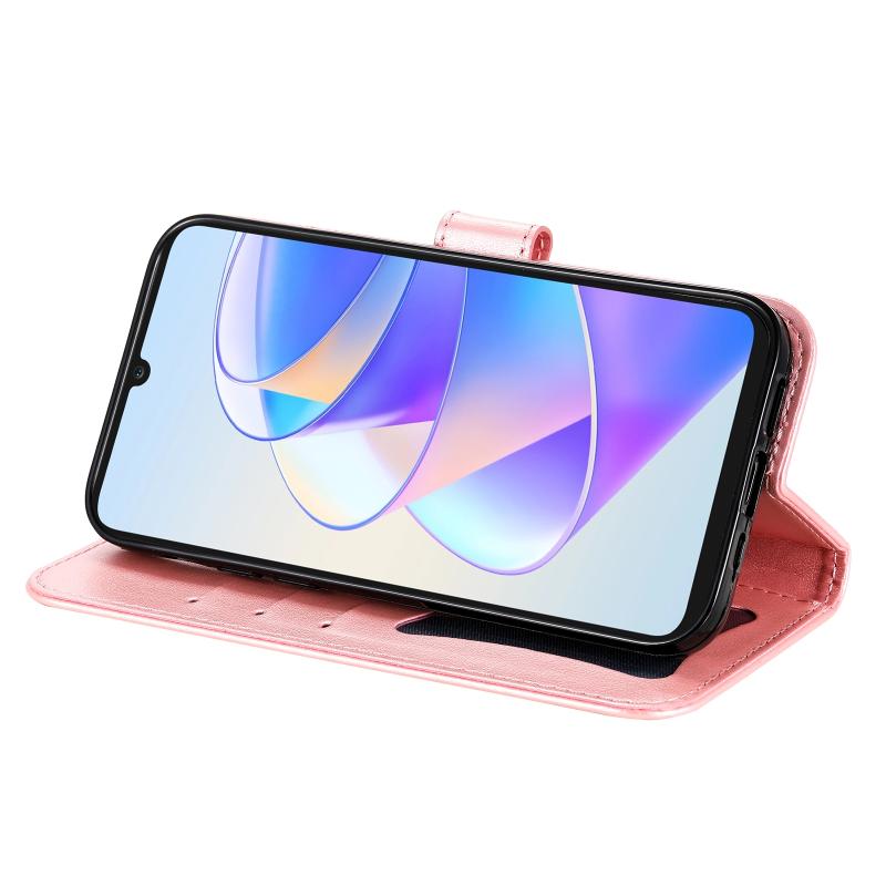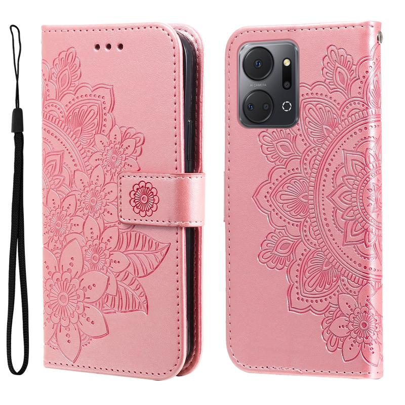 Θήκη τηλεφώνου Honor X7a με δερμάτινη ανάγλυφη διακόσμηση 7 πετάλων (Ροζ χρυσός)