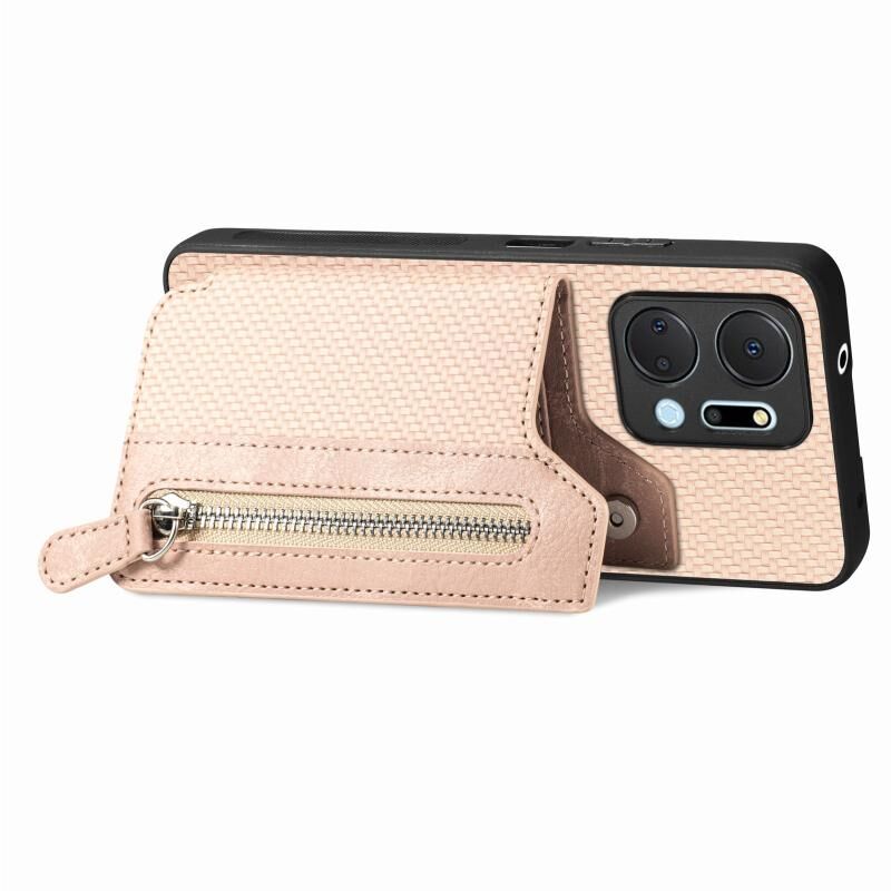 Για Honor X7A Carbon Fiber Οριζόντια Flip φερμουάρ πορτοφόλι τηλέφωνο υπόθεση (χακί)