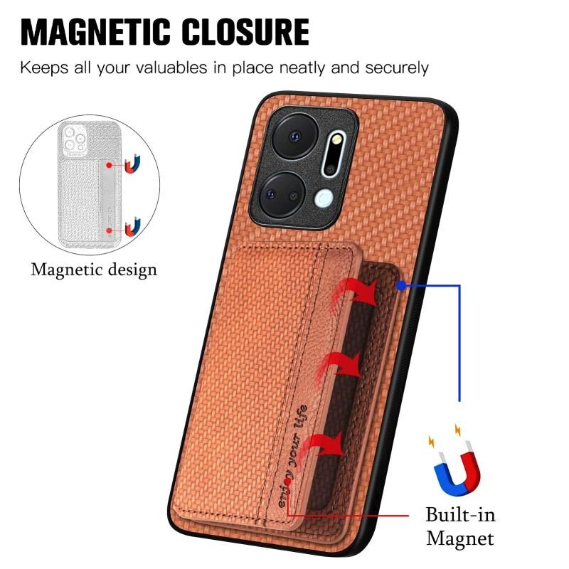 Για Honor X7A Carbon Fiber μαγνητική κάρτα πορτοφόλι τσάντα υπόθεση τηλεφώνου (καφέ)