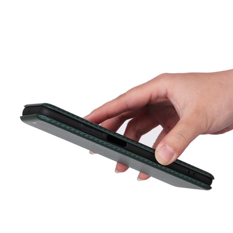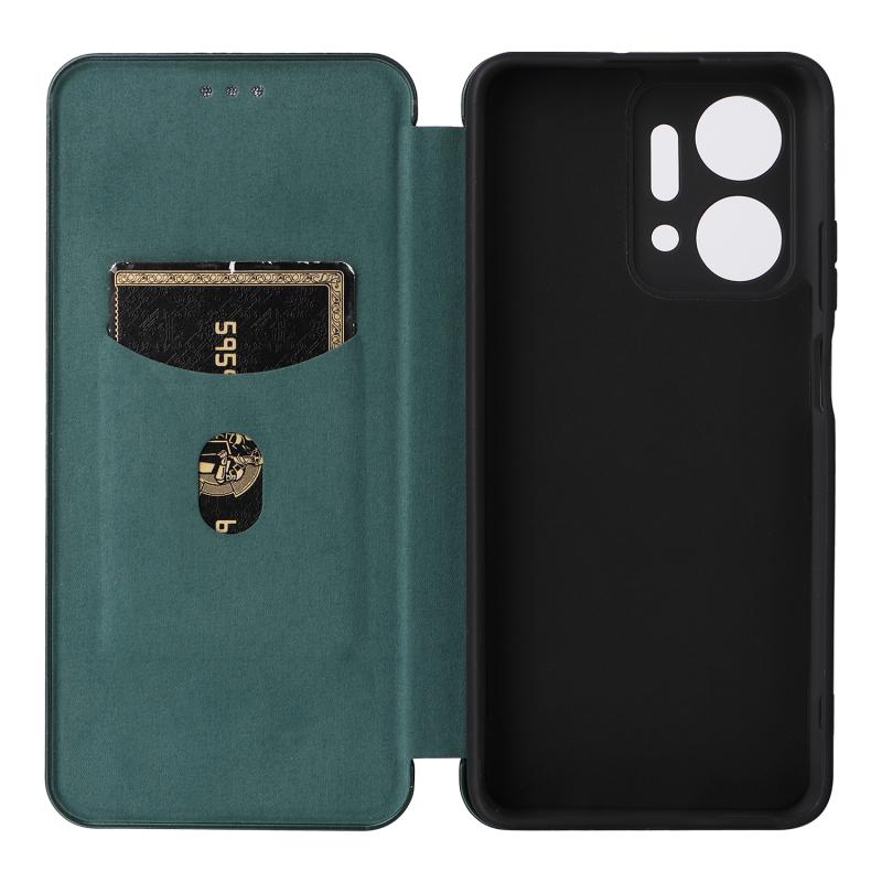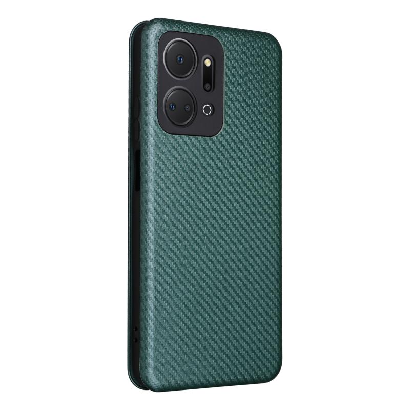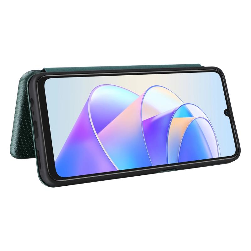 Θήκη τηλεφώνου από δέρμα με υφή ανθρακονήματος για Honor X7a (πράσινο)