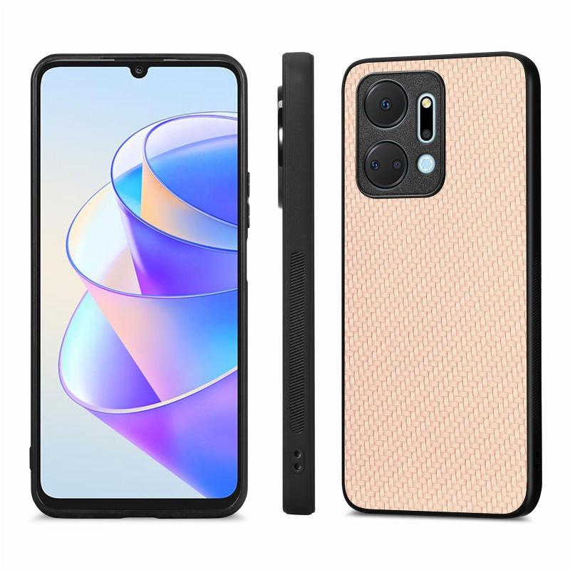 For Honor X7A Carbon Fiber Texture Leather Back Cover Phone Case(Khaki)