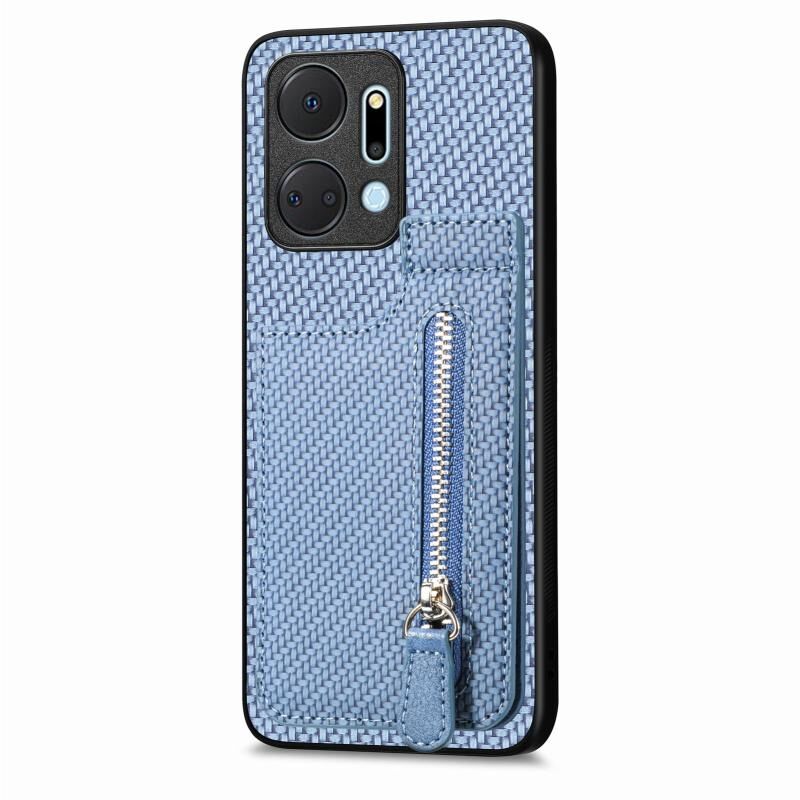 Για Honor X7A Carbon Fiber Κάθετη Flip φερμουάρ τηλέφωνο υπόθεση (μπλε)