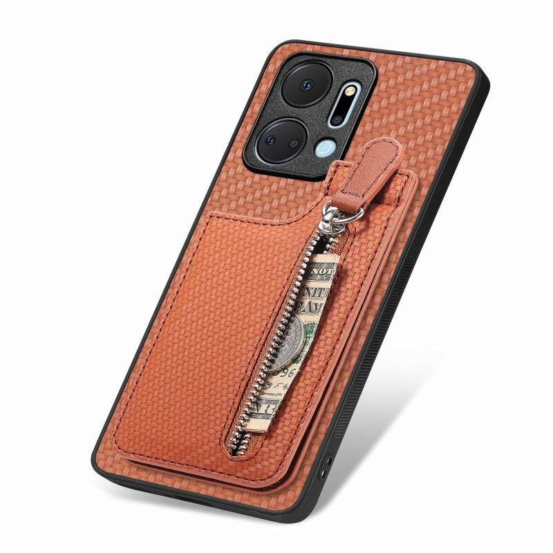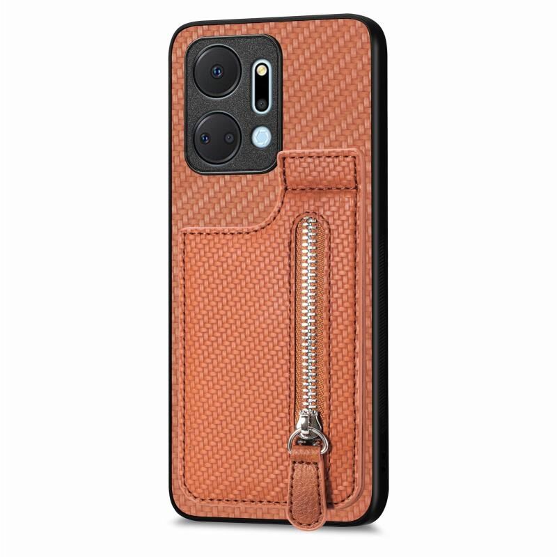 Για Honor X7A Carbon Fiber Κάθετη Flip φερμουάρ τηλέφωνο υπόθεση (καφέ)