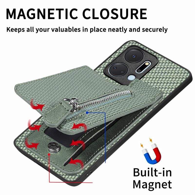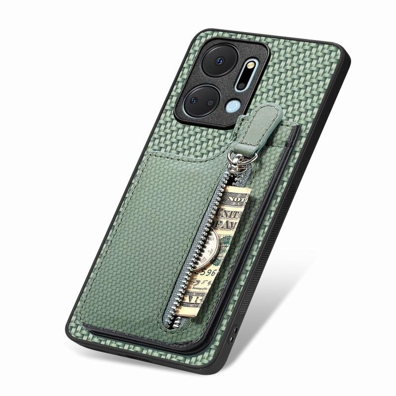 Για Honor X7A Carbon Fiber Κάθετη Flip φερμουάρ τηλέφωνο υπόθεση (Πράσινο)
