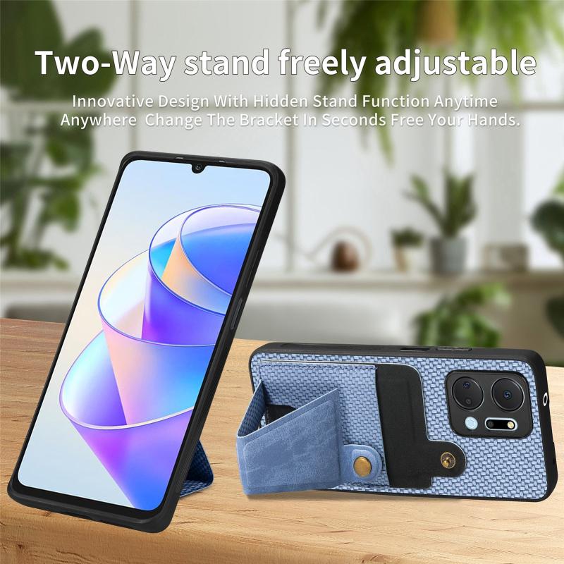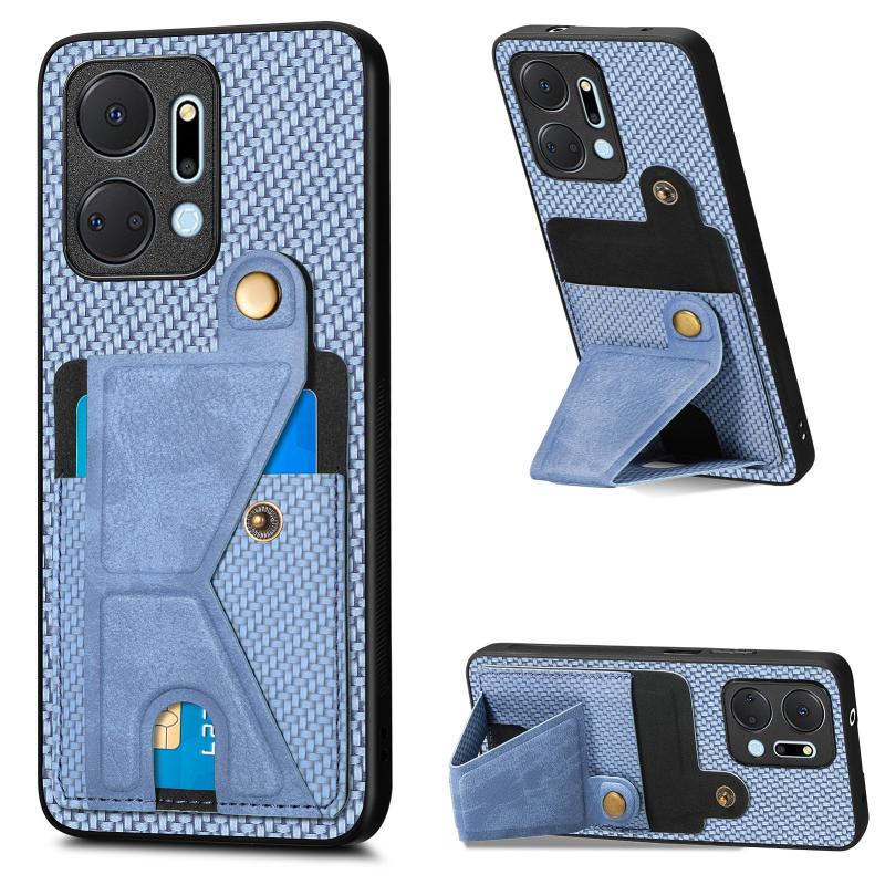 For Honor X7A Carbon Fiber Wallet Flip Card K-shaped Holder Phone Case(Blue)