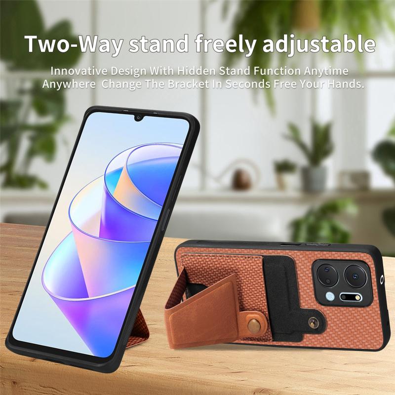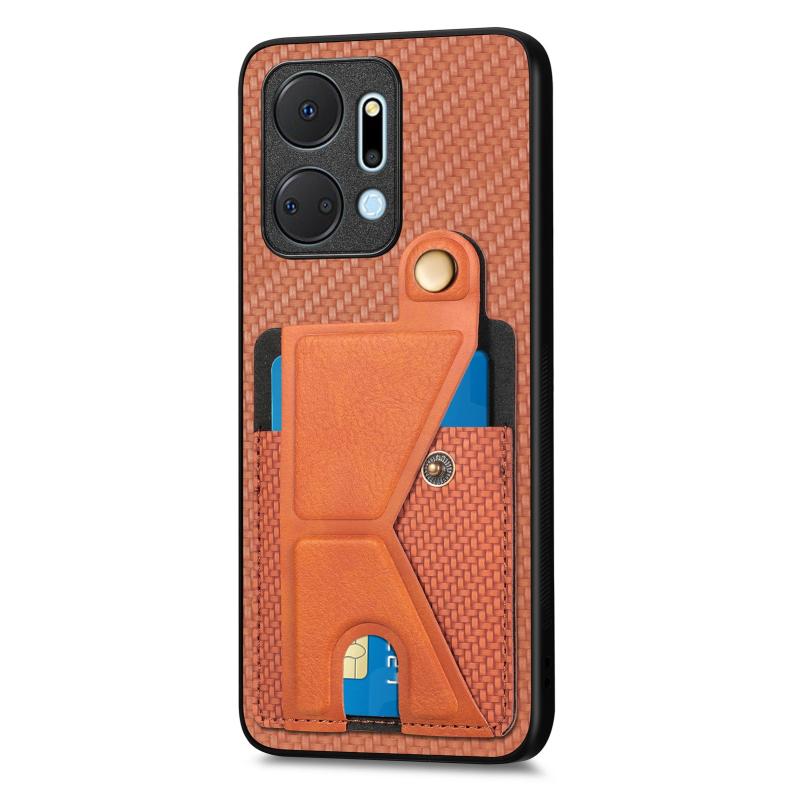 For Honor X7A Carbon Fiber Wallet Flip Card K-shaped Holder Phone Case(Brown)