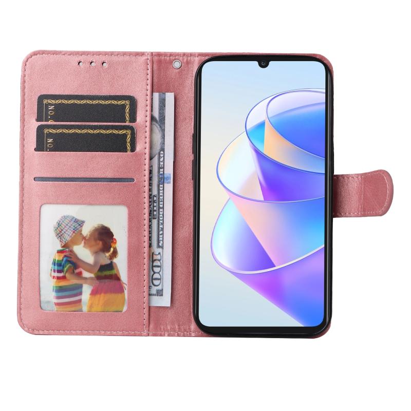 Θήκη τηλεφώνου από δέρμα με υφή μοσχαριού, τύπου flip, για Honor X7a Classic (Χρυσορόδινο)