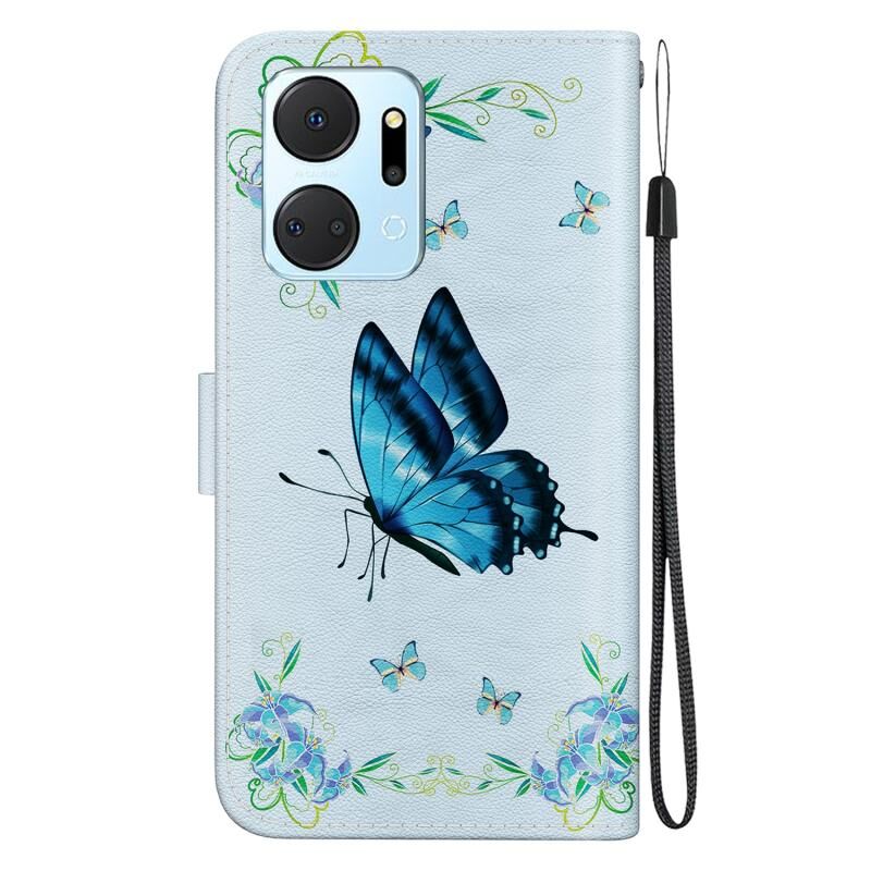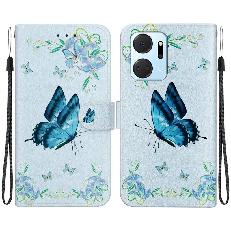Θήκη τηλεφώνου Honor X7a με κρυσταλλική υφή, πολύχρωμη σχεδίαση από δέρμα (Μωβ Παιώνια)