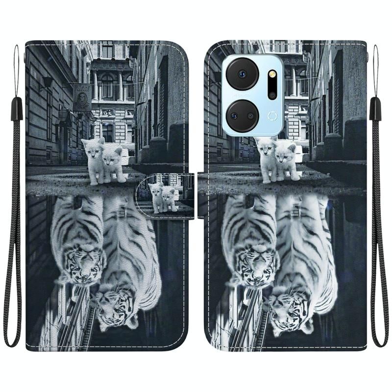 Θήκη τηλεφώνου Honor X7a με κρυσταλλική υφή, πολύχρωμη σχεδίαση δέρματος (Αντανάκλαση Γάτας Τίγρης)