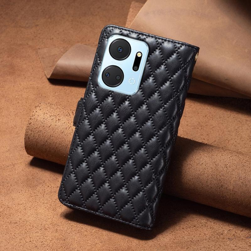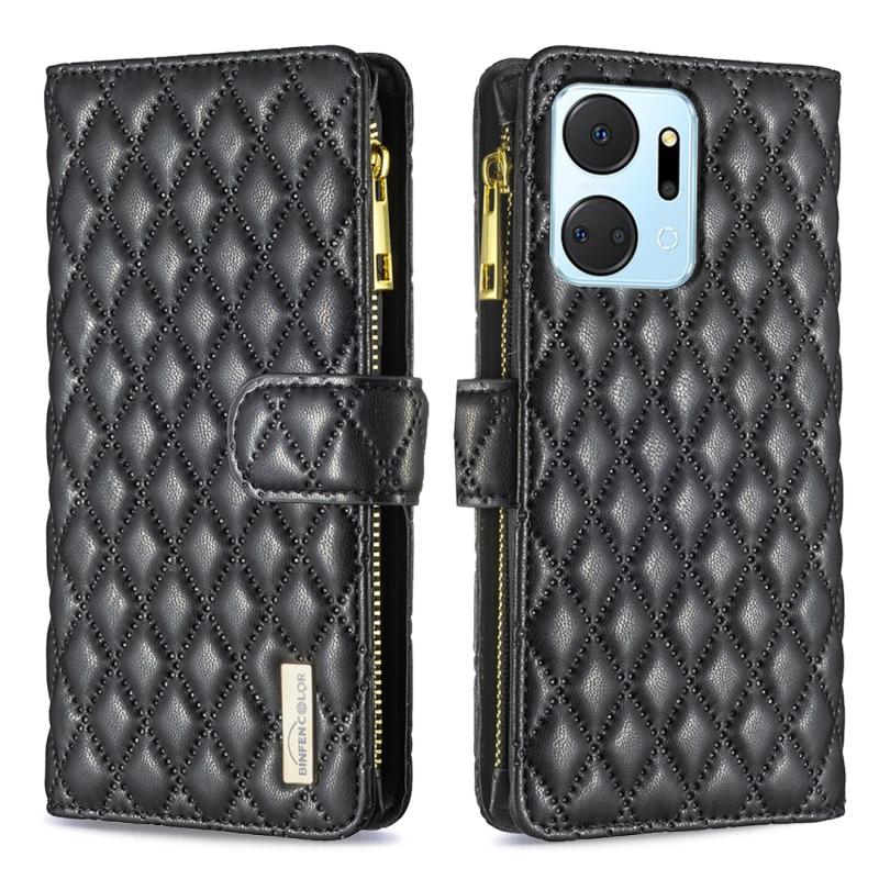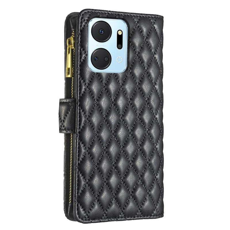 For Honor X7a Diamond Lattice Zipper Wallet Leather Flip Phone Case(Black)