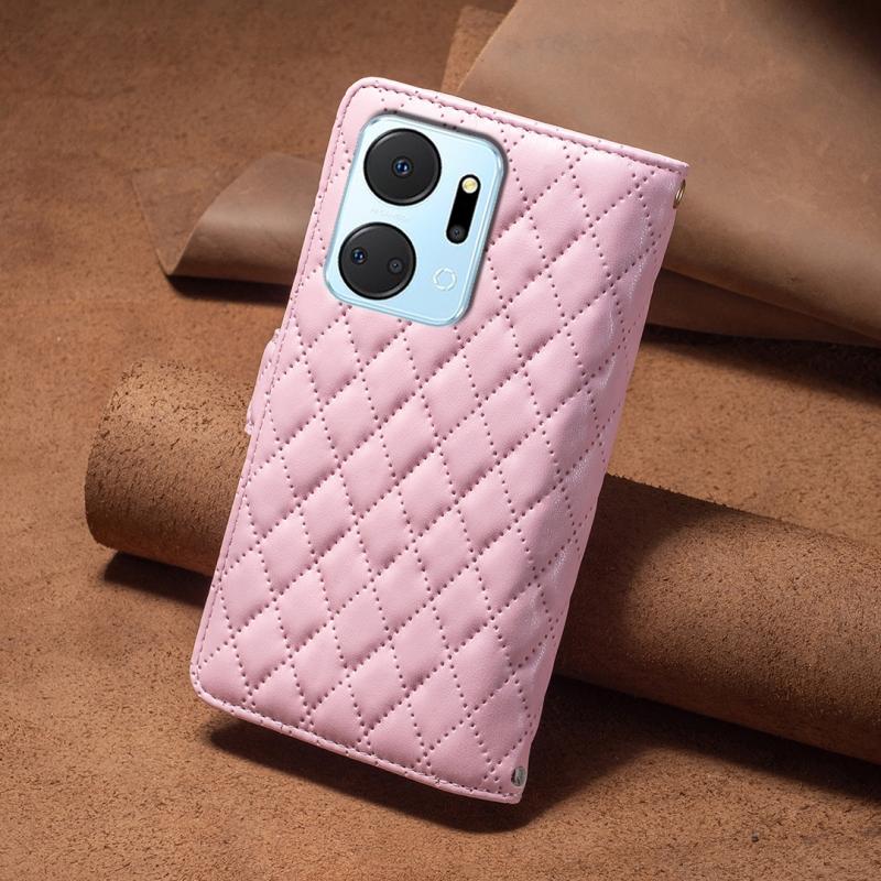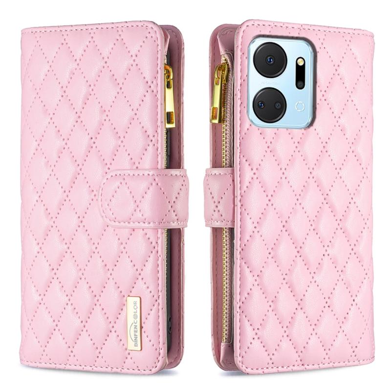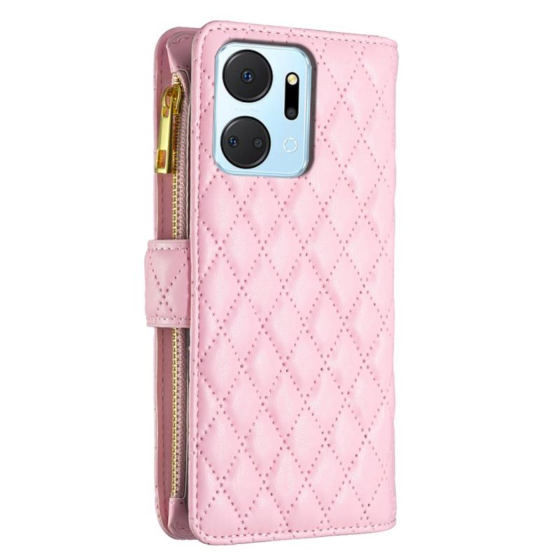 For Honor X7a Diamond Lattice Zipper Wallet Leather Flip Phone Case(Pink)