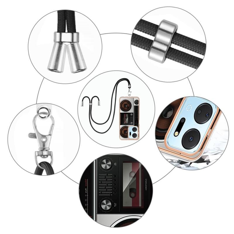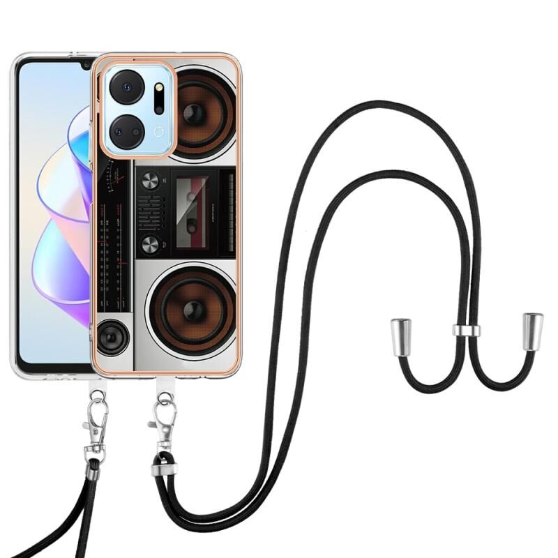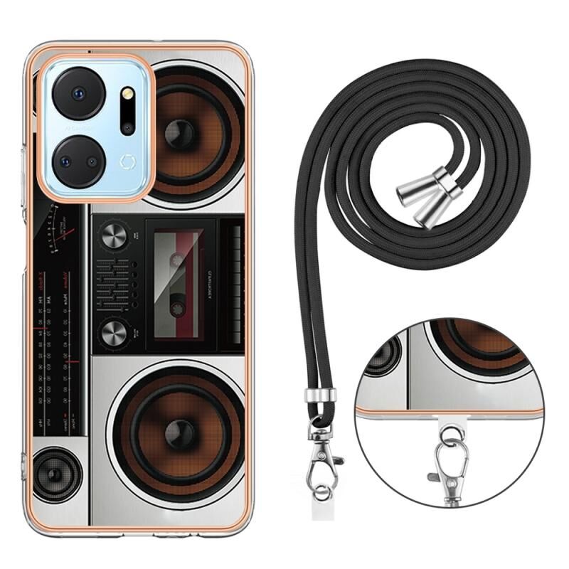 Θήκη τηλεφώνου For Honor X7a με επιμετάλλωση, διπλής όψης IMD με κορδόνι (Ρετρό Ραδιόφωνο)