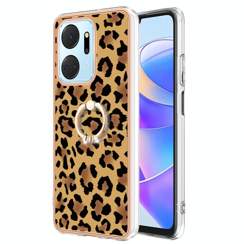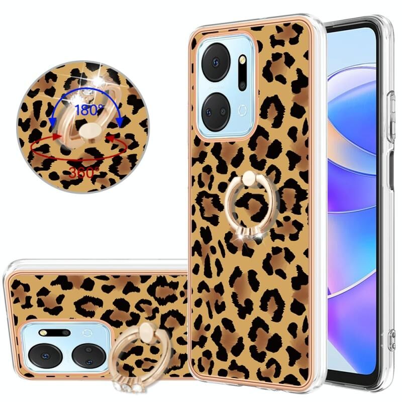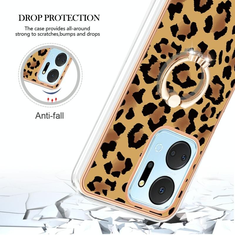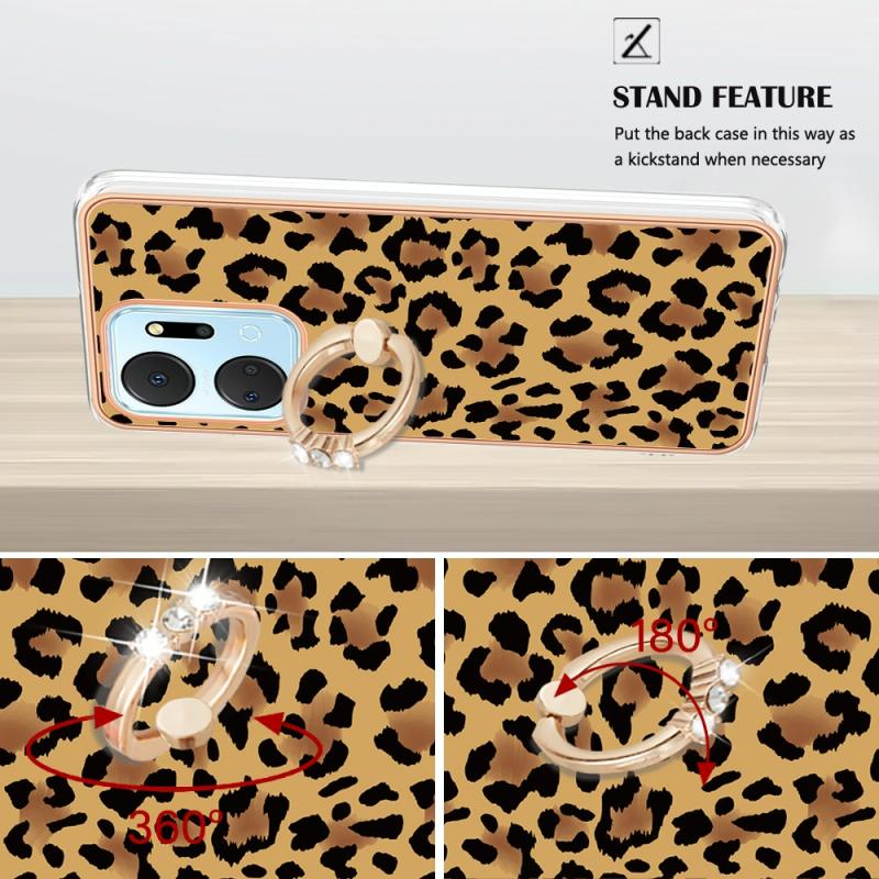 For Honor X7a Electroplating Dual-side IMD Phone Case with Ring Holder(Leopard Print)