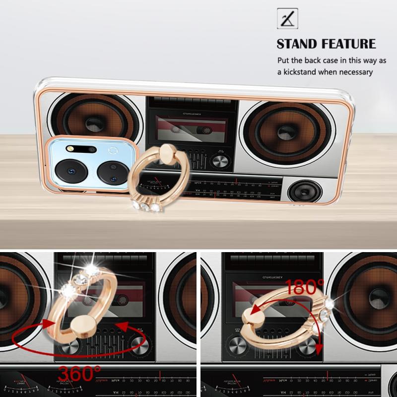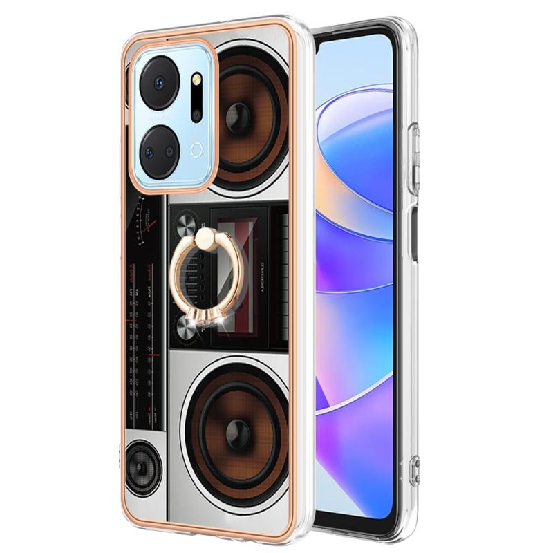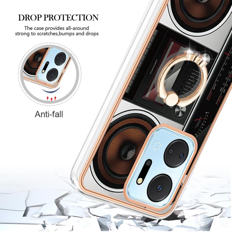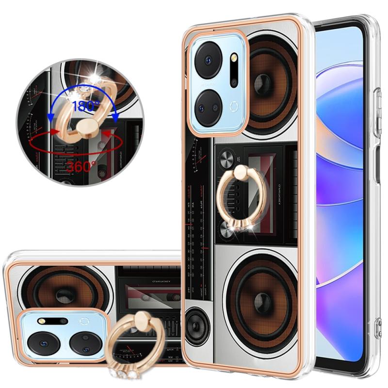 For Honor X7a Electroplating Dual-side IMD Phone Case with Ring Holder(Retro Radio)