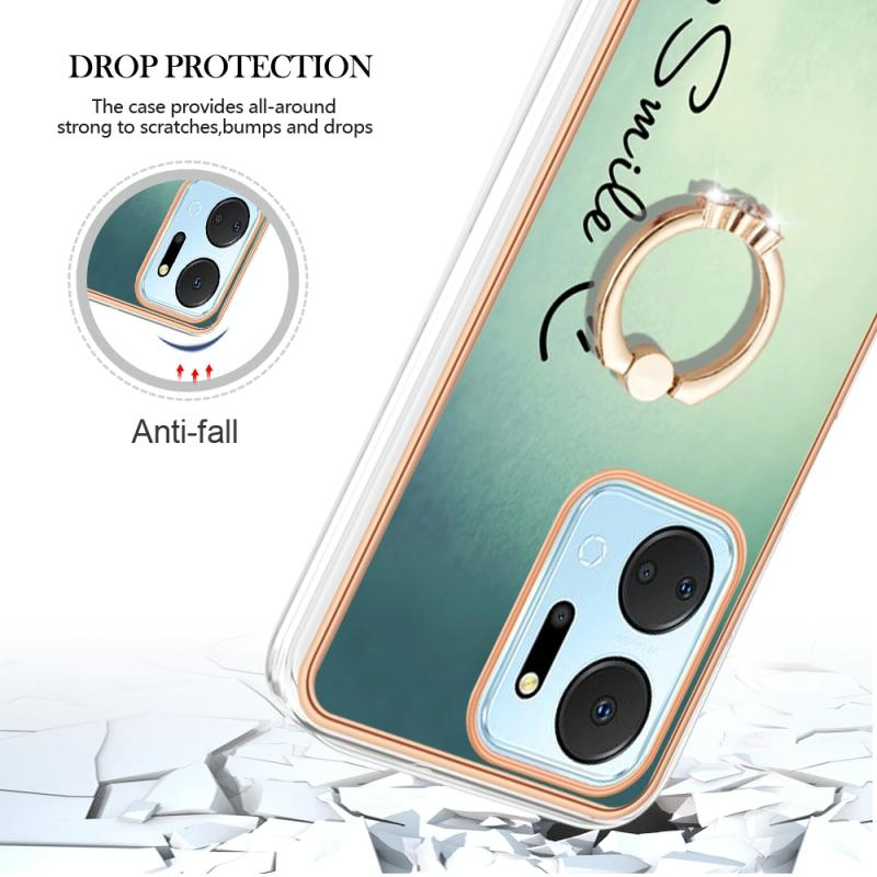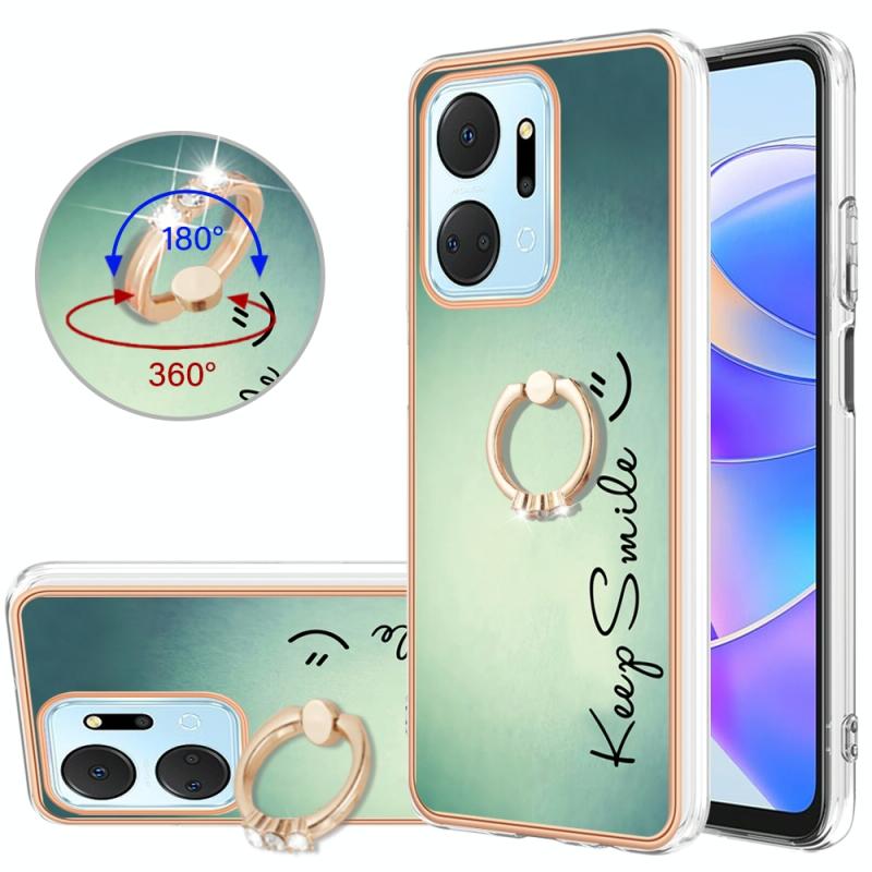 For Honor X7a Electroplating Dual-side IMD Phone Case with Ring Holder(Smile)