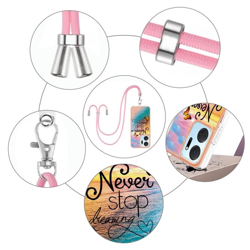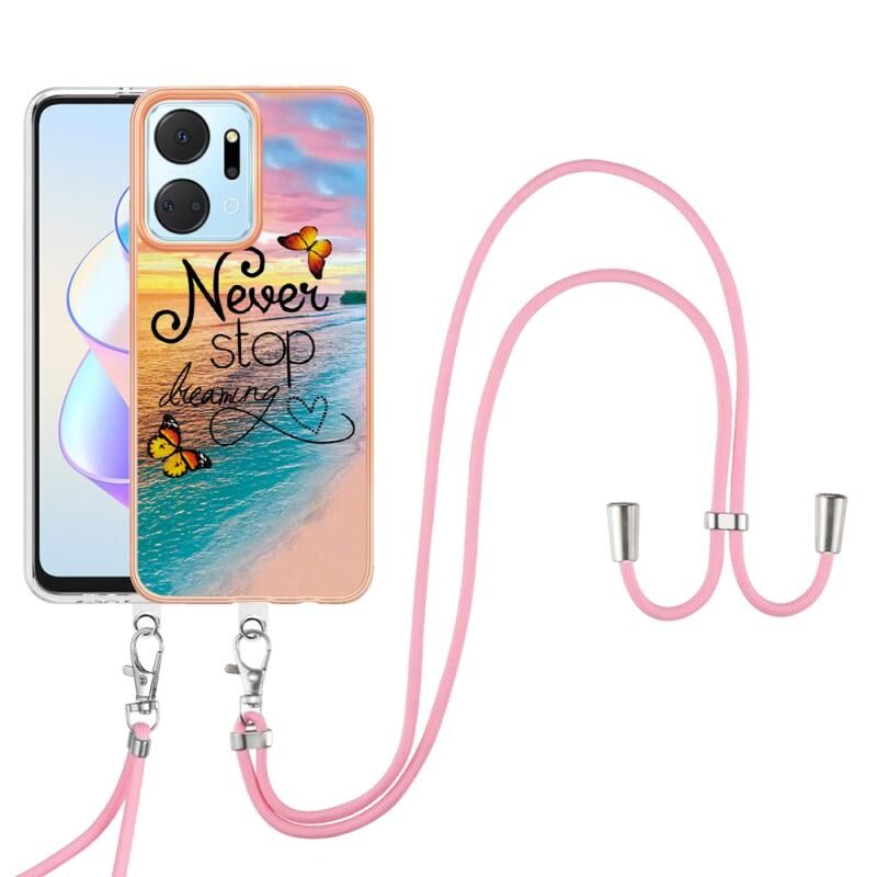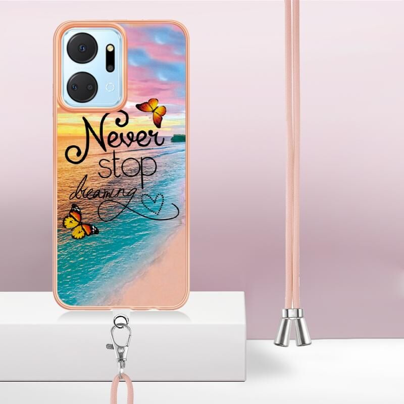 Θήκη τηλεφώνου για Honor X7a με ηλεκτρολυτική επιμετάλλωση IMD TPU με κορδόνι (Όνειρο Πεταλούδας)