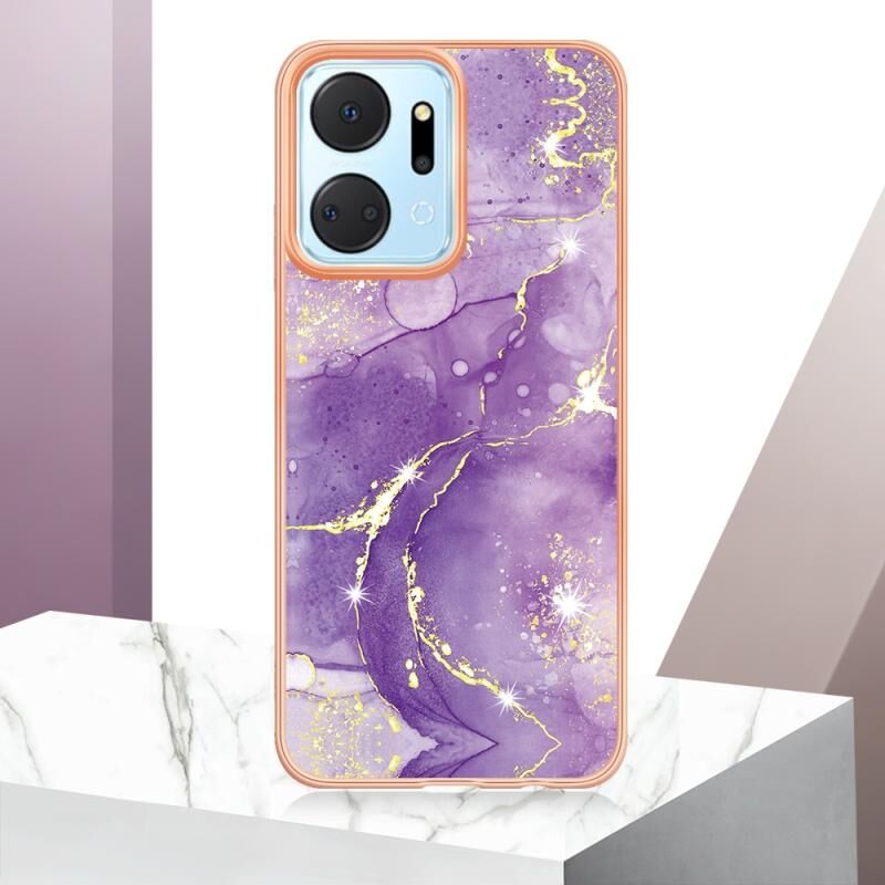 Θήκη τηλεφώνου για Honor X7a, Γαλβανισμένο Μάρμαρο, Διπλής Όψης IMD (Μωβ 002)