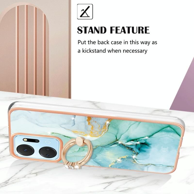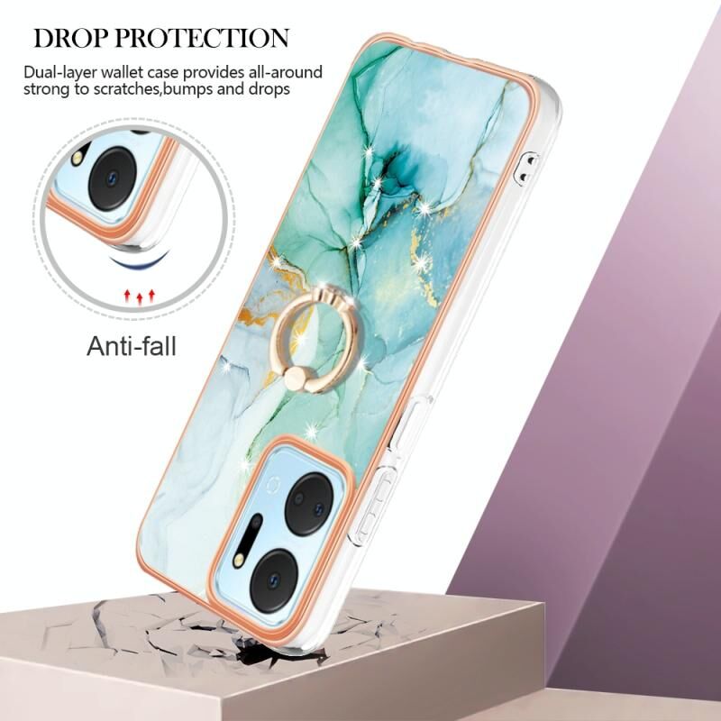 Θήκη τηλεφώνου για Honor X7a Electroplating Marble IMD TPU με δακτύλιο στήριξης (Λευκό 006)