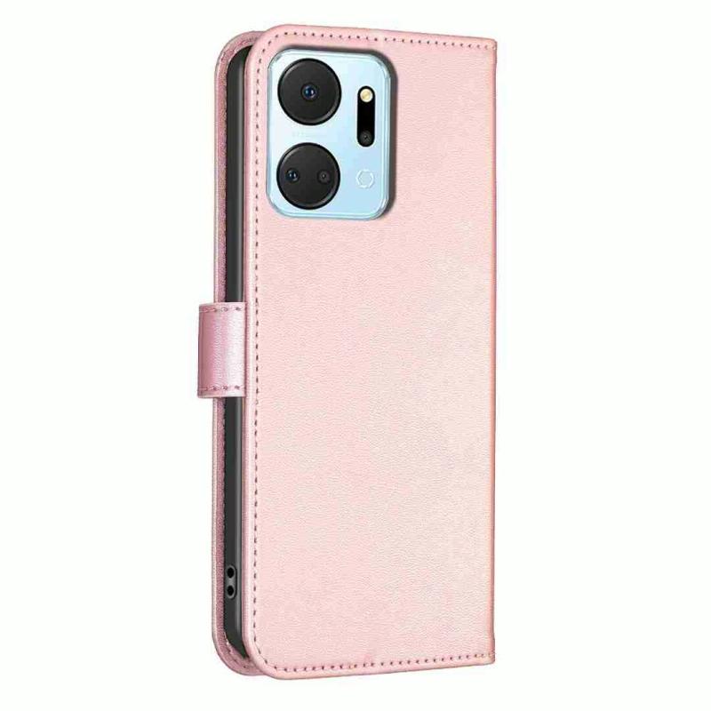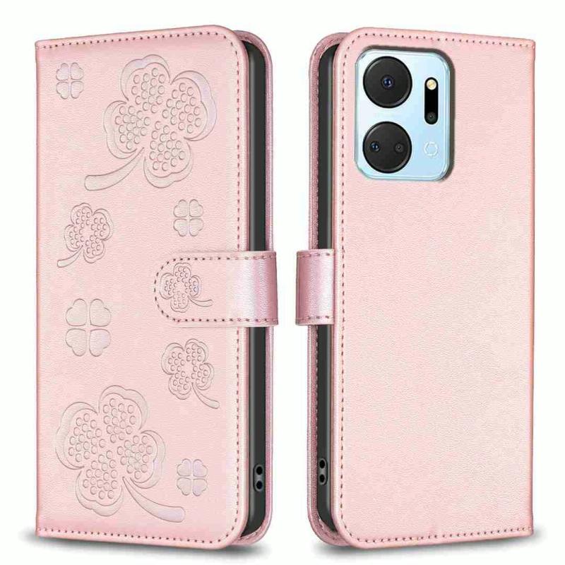 For Honor X7a Four-leaf Embossed Leather Phone Case(Pink)