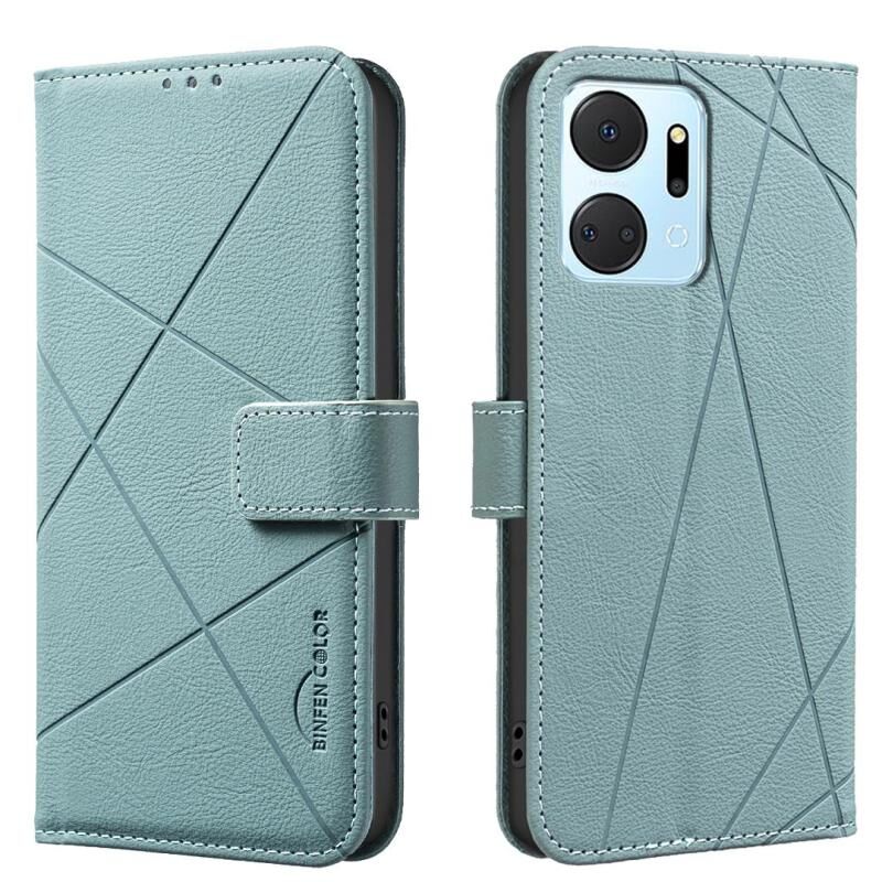 Θήκη τηλεφώνου από δέρμα με γεωμετρικό σχέδιο και RFID για Honor X7A (πράσινο)