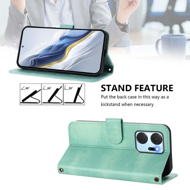 Θήκη τηλεφώνου από δέρμα retro με σχέδιο patchwork για Honor X7a / Honor Play7T (Μέντα Πράσινο)
