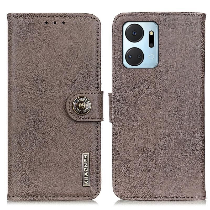 Θήκη τηλεφώνου δερμάτινη, οριζόντια αναδιπλούμενη, με υφή δέρματος αγελάδας για Honor X7A KHAZNEH (Χακί)
