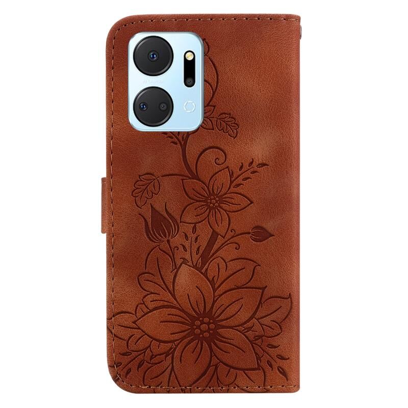 Για Honor X7a Lily ανάγλυφη δερμάτινη θήκη τηλεφώνου (καφέ)