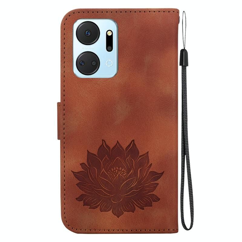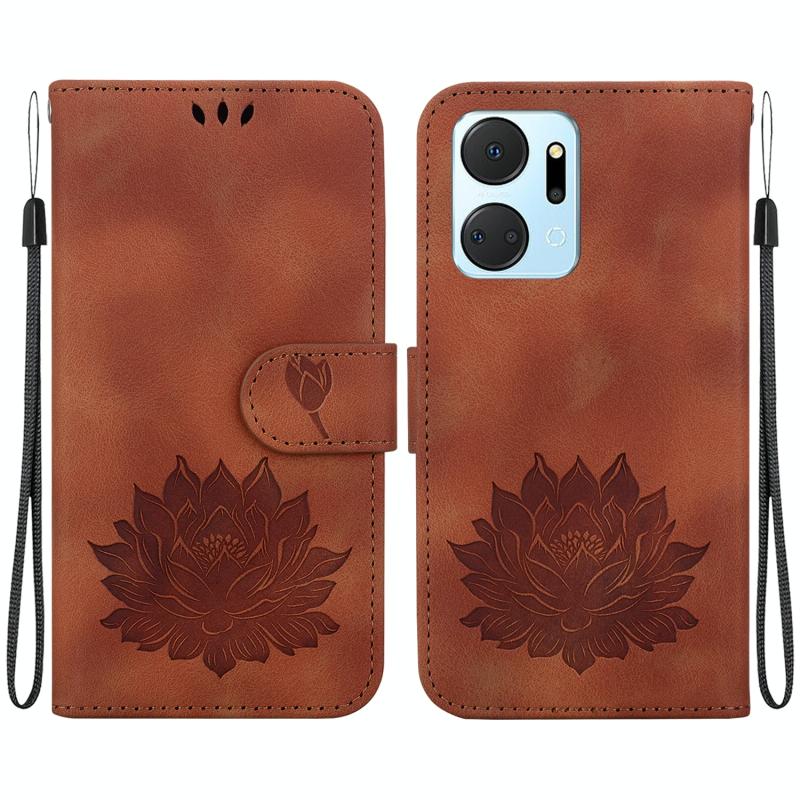 For Honor X7a Lotus Embossed Leather Phone Case(Brown)