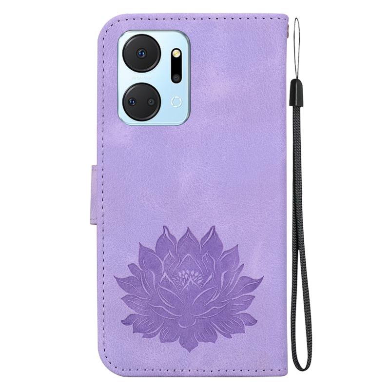 For Honor X7a Lotus Embossed Leather Phone Case(Purple)