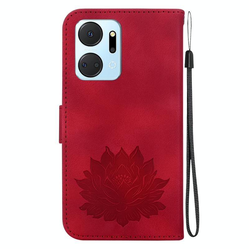 For Honor X7a Lotus Embossed Leather Phone Case(Red)