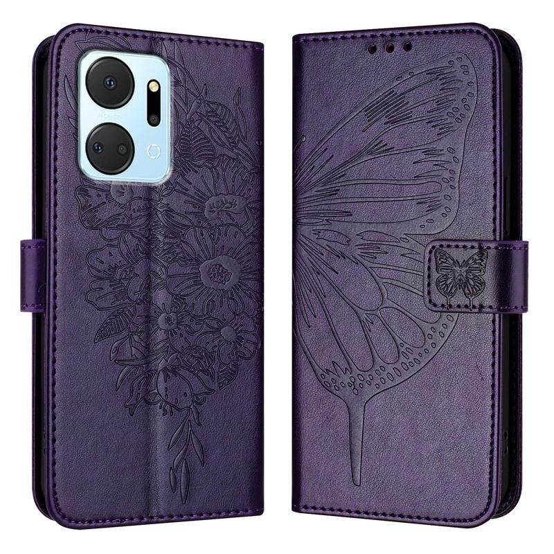 Για Honor X7a / Play7T 5G ανάγλυφη πεταλούδα δερμάτινη θήκη τηλεφώνου (σκούρο μοβ)