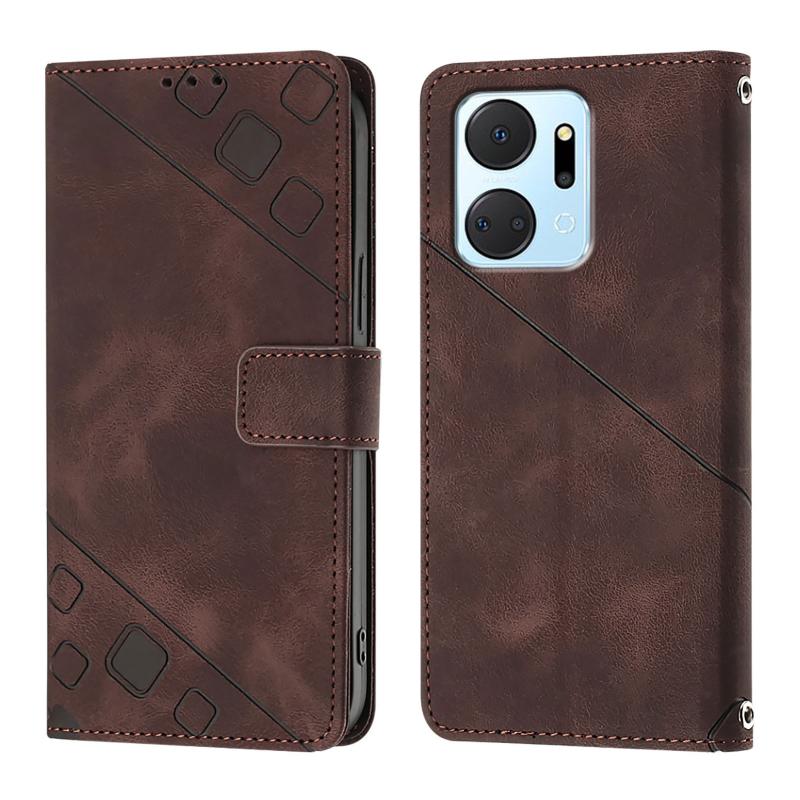 For Honor X7a / Play7T 5G Skin-feel Embossed Leather Phone Case(Brown)