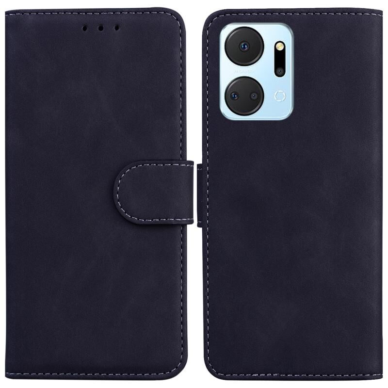 Θήκη τηλεφώνου από δέρμα με καθαρό χρώμα και αίσθηση, τύπου flip, για Honor X7A (Μαύρο)