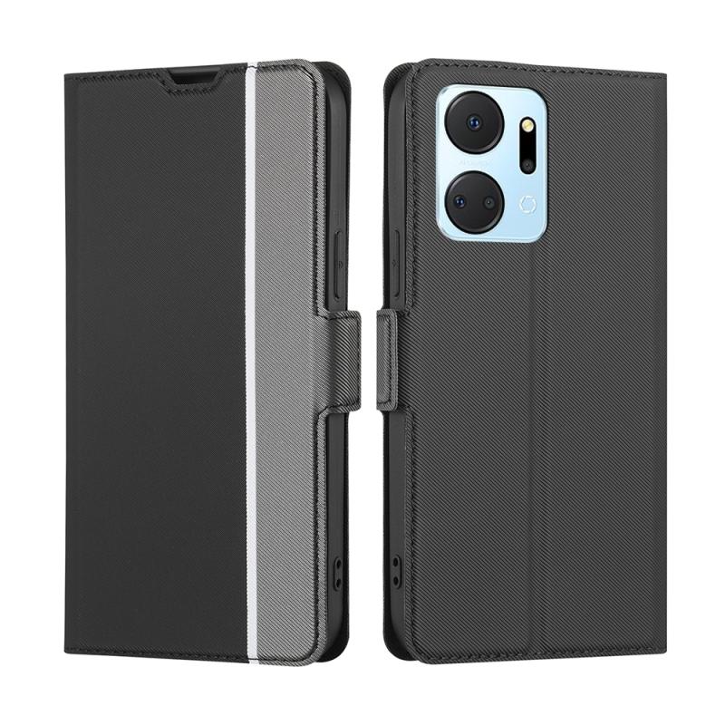 Θήκη τηλεφώνου από δέρμα με υφή Twill και πλευρική αγκράφα για Honor X7A (Μαύρο)