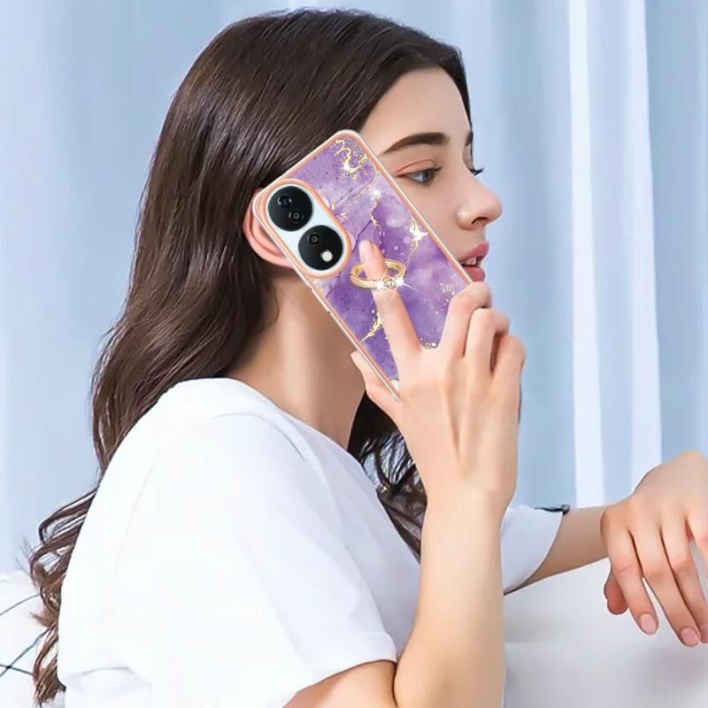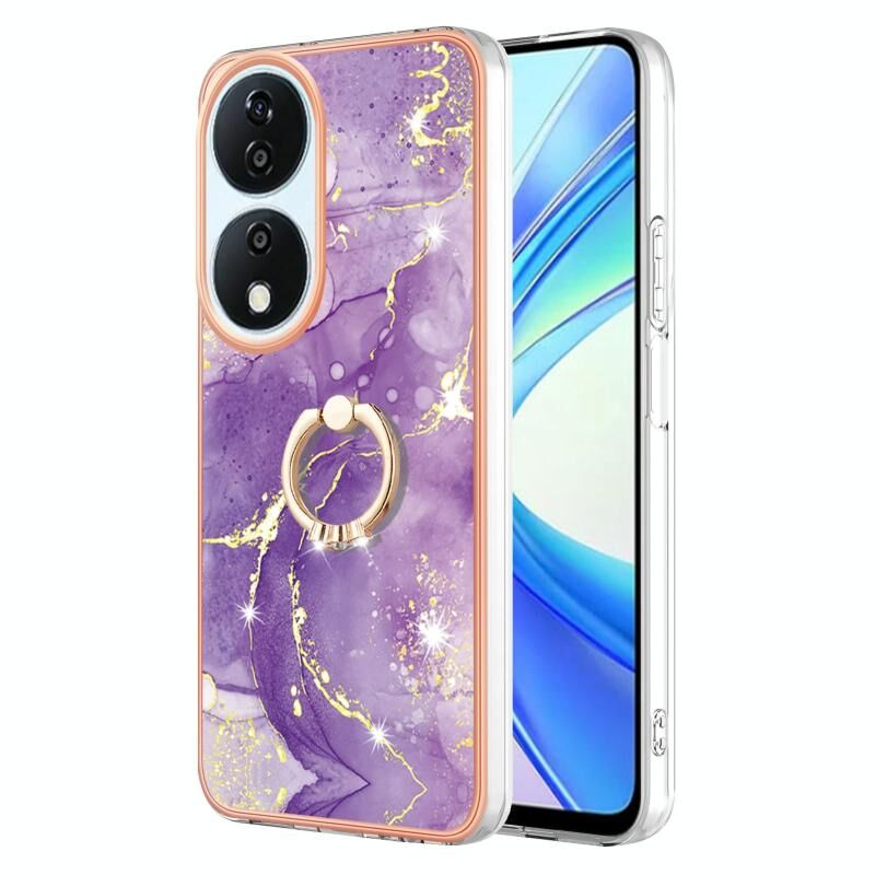 Θήκη κινητού τηλεφώνου για Honor X7b 4G / 5G με Ηλεκτρολυτική επικάλυψη, σχέδιο Μάρμαρου IMD, από TPU με Δακτύλιο Στήριξης (Μωβ 002)