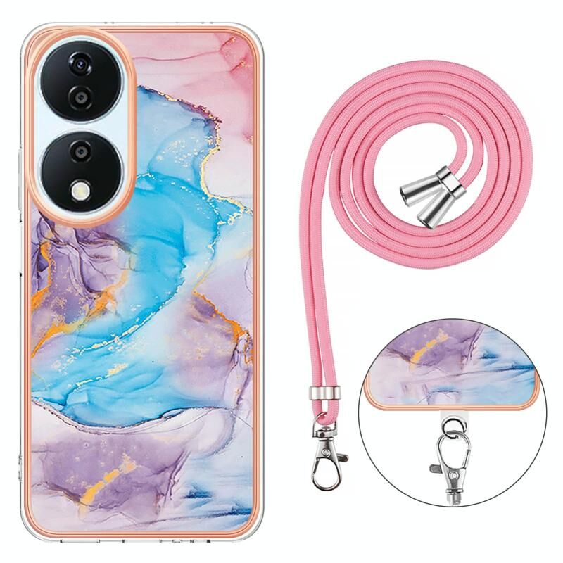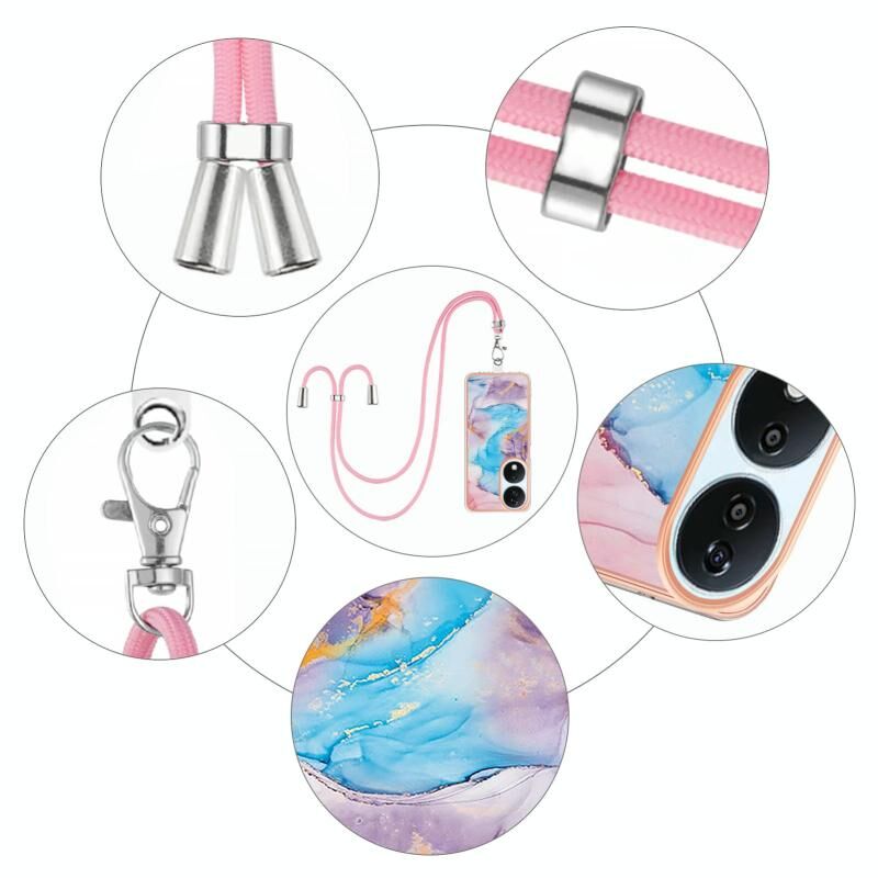 Θήκη προστασίας για Honor X7b 4G / 5G με σχέδιο επιμετάλλωσης IMD TPU, ανθεκτική σε κρούσεις, με κορδόνι λαιμού (Ροζ Λέπια)