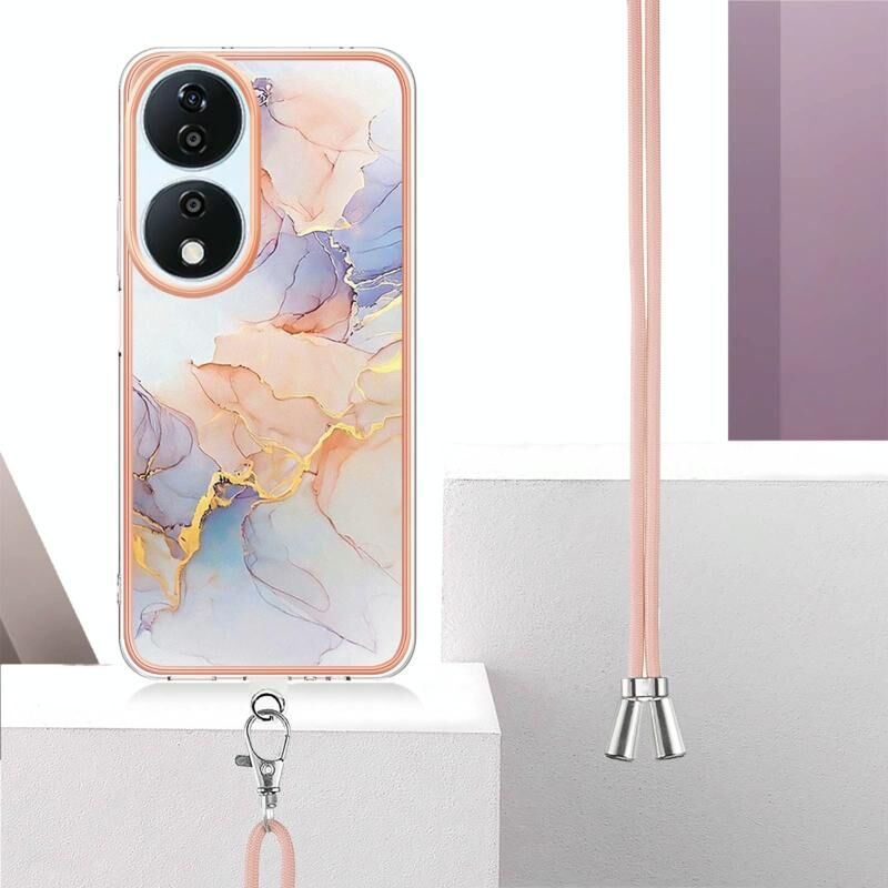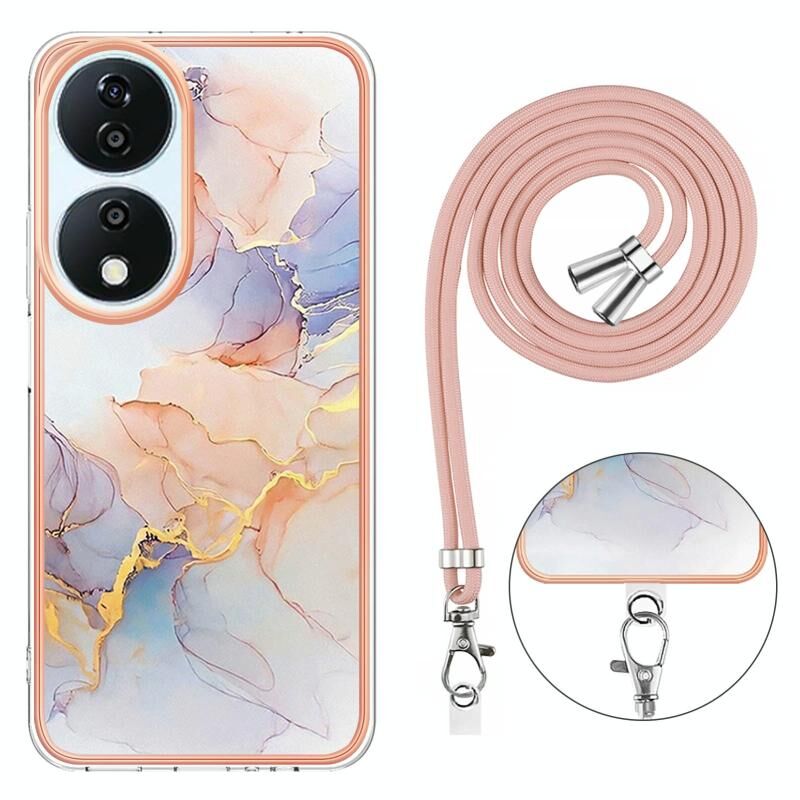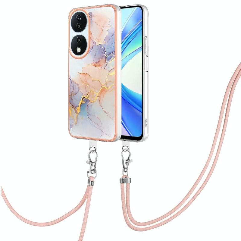 Θήκη προστασίας για Honor X7b 4G / 5G με σχέδιο επιμετάλλωσης IMD TPU, ανθεκτική σε κρούσεις, με κορδόνι λαιμού (Ροζ Λέπια)