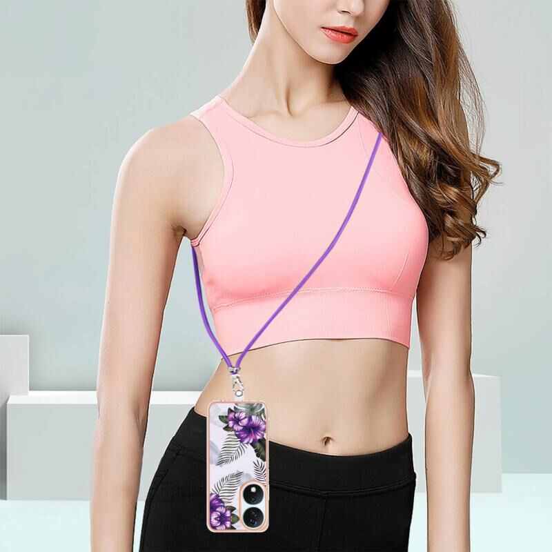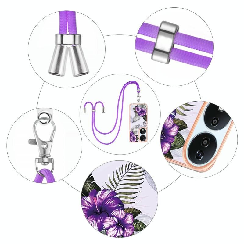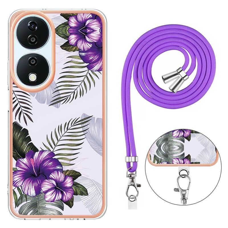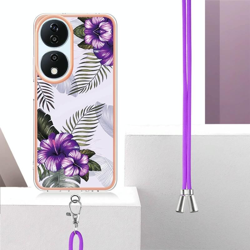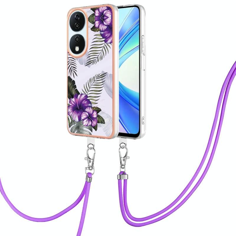 Θήκη προστασίας για Honor X7b 4G / 5G με σχέδιο επιμετάλλωσης IMD TPU, ανθεκτική σε κρούσεις, με κορδόνι λαιμού (Ροζ Λέπια)